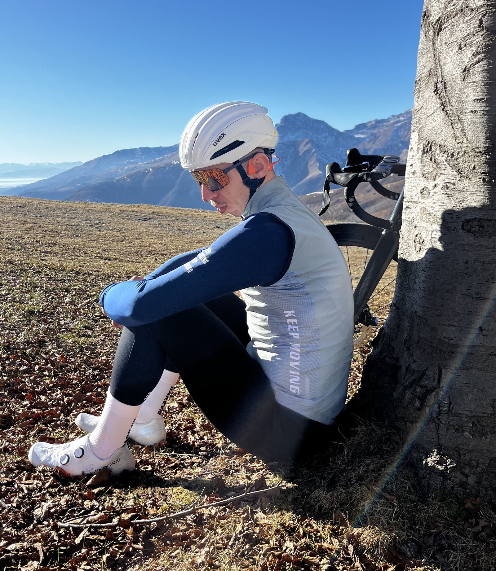 Designed to be both windproof and breathable, this cycling vest features four-way stretch waterproof fabric, mesh sides, and two-way zippers for better temperature control.