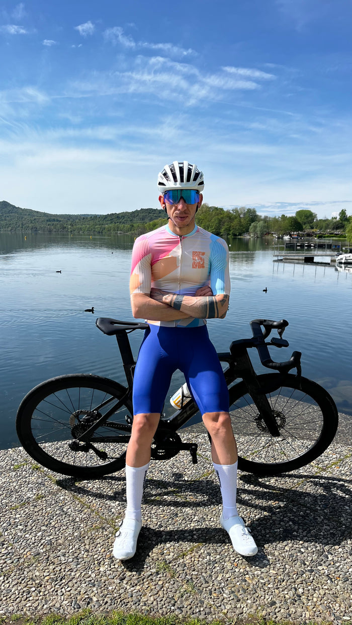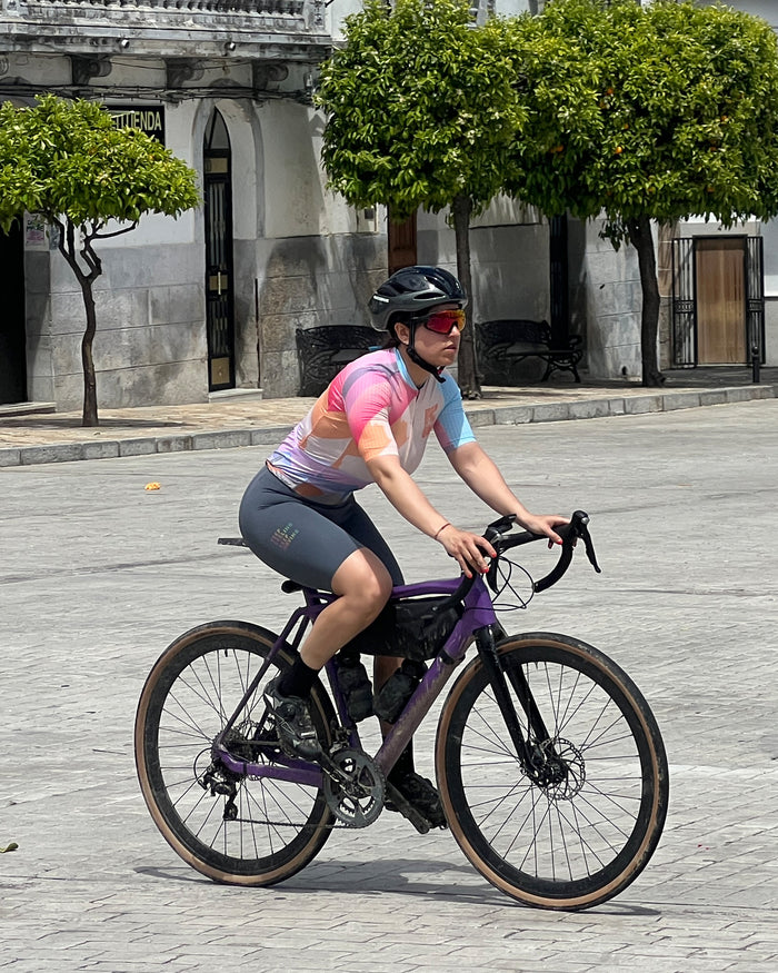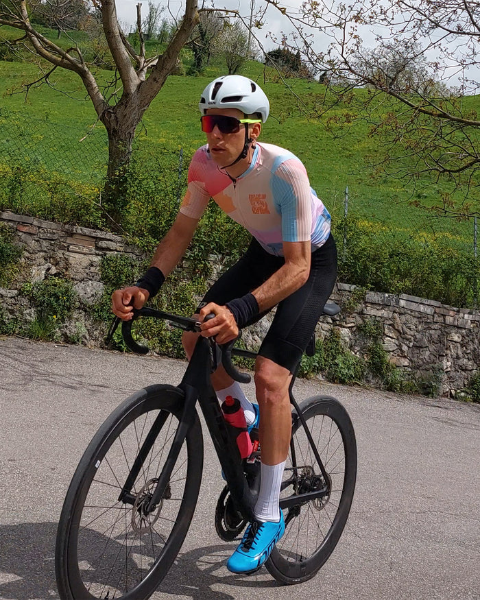 Presenta un estampado de paisaje en tonos macarrones. profesional maillot de ciclismo Está diseñado para un rendimiento óptimo. Cuerpo principal fabricado con tela de seda italiana que absorbe la humedad y... aero Las mangas en tejido de rayas en relieve maximizan el flujo de aire, la suave cremallera autoblocante YKK y el agarre antideslizante en el dobladillo mantienen la maillot de ciclismo en la mejor posición mientras tu paseo en bicicleta, Garantiza comodidad durante todo el día. Los tres bolsillos traseros clásicos con parches reforzados son prácticos para recorridos largos.