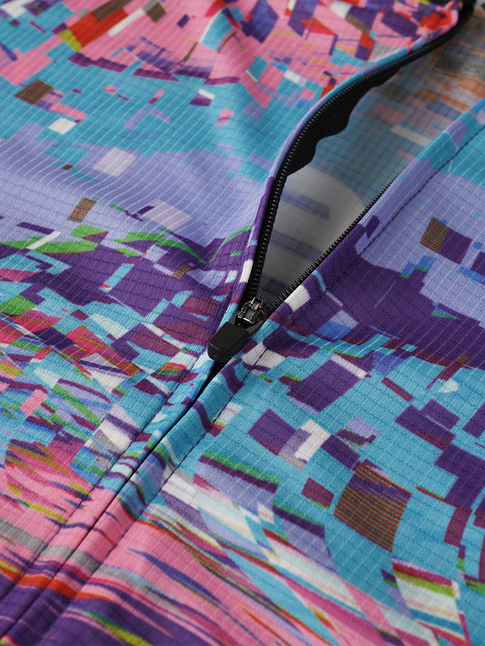 El neón maillot de ciclismo Se inspira en el vibrante brillo de las luces de neón, combinando púrpuras y azules profundos con trazos fluidos de rosa y naranja para capturar la velocidad y la libertad. El diseño crea un equilibrio dinámico entre patrones digitales futuristas y el ritmo natural del movimiento, transformando cada... paseo en bicicleta en una expresión vívida de energía, individualidad y estilo.