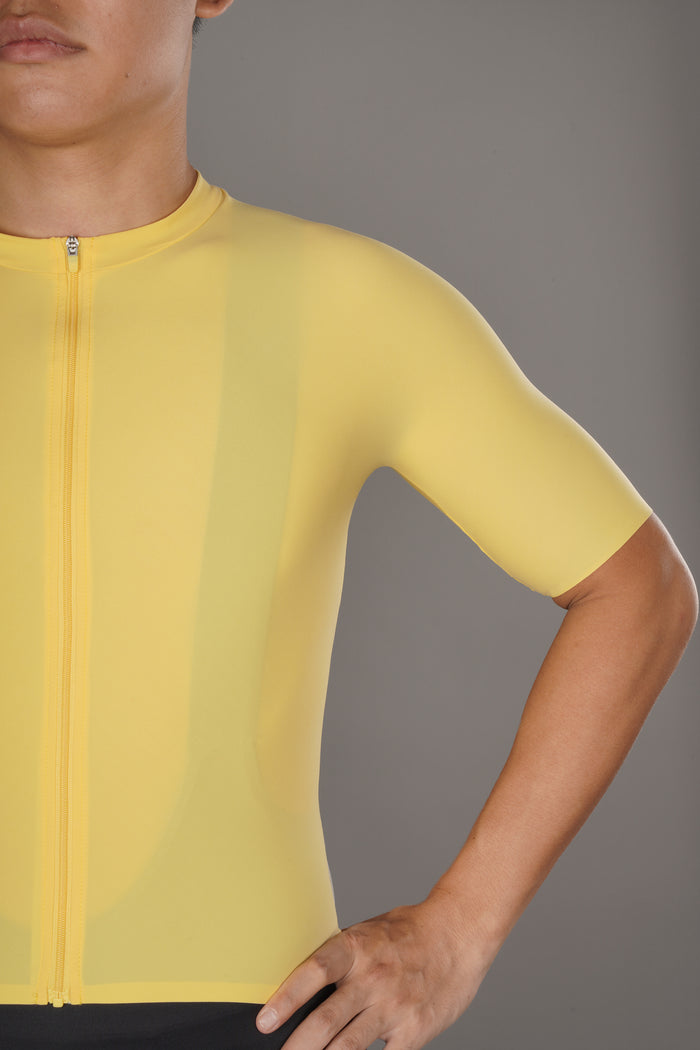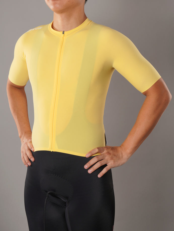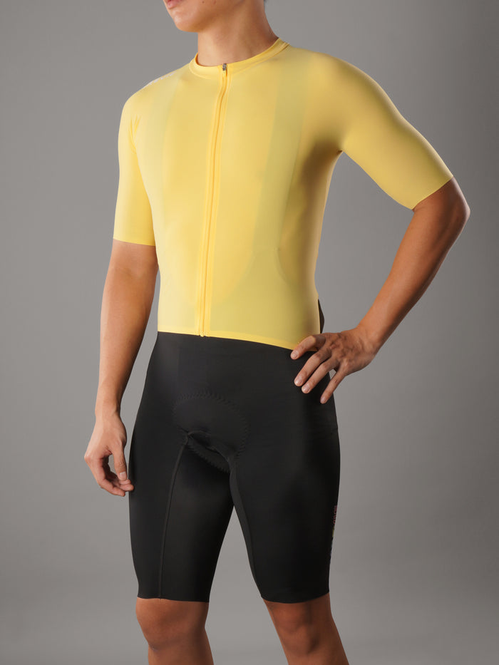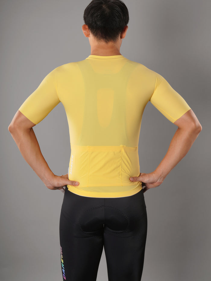 両面フリーカット生地を使用したこの サイクリングジャージ 究極の快適性とパフォーマンスのためにデザインされています。独自の生地構造により縫い目を最小限に抑え、柔軟性を高め、まるで第二の肌のようなフィット感を実現。 自転車ライド. ミニマリストなデザインと熟練の職人技により、一枚の生地を使用して完璧な体へのフィット感を実現しました。